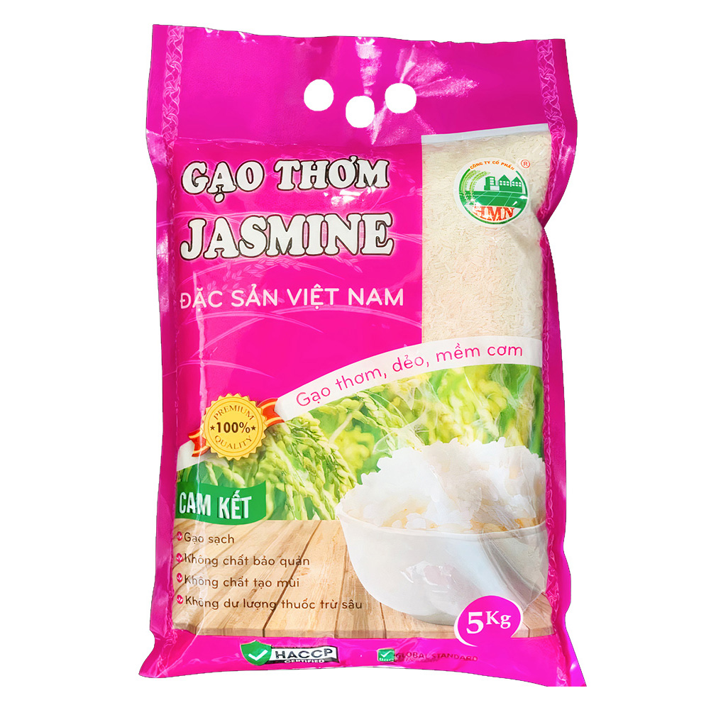 Jasmine fragrant rice is one of the most popular rice varieties on the market today. The grains are long, translucent, and beautifully white without any chalkiness. The cooked rice is soft, sticky, has a light aroma, and is delicious. The average grain length is approximately ≥6.6mm. The price is affordable for all families.